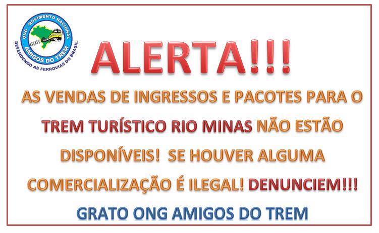 A Organização Não Governamental (Ong) Amigos do Trem está alertando passageiros sobre a venda ilegal de passagens do trem turístico que ligará Minas Gerais ao Rio de Janeiro. Apesar das atividades estarem marcadas para começar a partir do segundo semestre deste ano, a venda dos bilhetes ainda não teve início. Mas, nas redes sociais, já há quem queira tirar vantagem de pessoas interessadas em viajar utilizando o serviço.